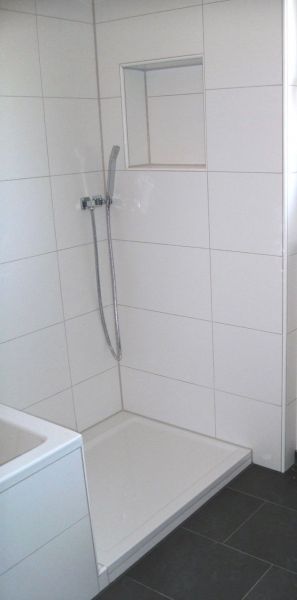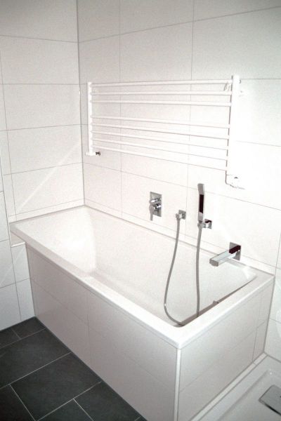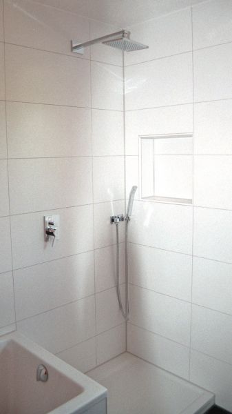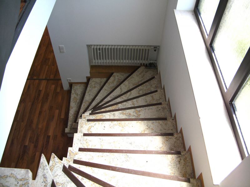Im Erdgeschoss wurden durch zwei Durchbrüche durch die tragende Mittelwand attraktive Verbindungen der Nutzungsbereiche Essen und Kochen sowie Wohnen und Diele geschaffen und dadurch ein modernes Raumkonzept ermöglicht. Alle Sanitärräume wurden mit modernen Objekten neu gestaltet, die gesamte Haustechnik wurde komplett erneuert. Um dem täglich anfallenden Wäschebedarf eines 5-Personen-Haushalts logistisch gerecht zu werden, wurde auf Bauherrenwunsch ein Wäscheabwurf-System als Schachtanlage integriert. Dieses endet im Keller und sammelt dort die oben eingeworfene Wäsche zentral im Wäschekorb direkt neben der Waschmaschine.