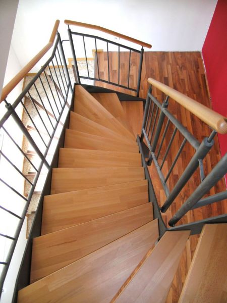 Um zusätzlichen Platz zu schaffen, wird das Dachgeschoss ausgebaut und durch eine neue Stahlwangentreppe erschlossen. Im Dachgeschoss werden Schlafzimmer mit Ankleide und Bad sowie eine Arbeitsecke für die Eltern geschaffen so dass das 1.Obergeschoss mit drei Schlafräumen und Badezimmer komplett für die Kinder reserviert bleibt. In diesem Zuge werden auch die energetischen Aspekte der Sanierung in Angriff genommen, die Fassade des Hauses erhält ein Wärmedämm-Verbundsystem, der Dachstuhl wird mit Zwischensparrendämmung nach Anforderung der ENEV versehen. Die nach Süden zugewandte Dachfläche erhält Solarpaneele zur Warmwasserbereitung.